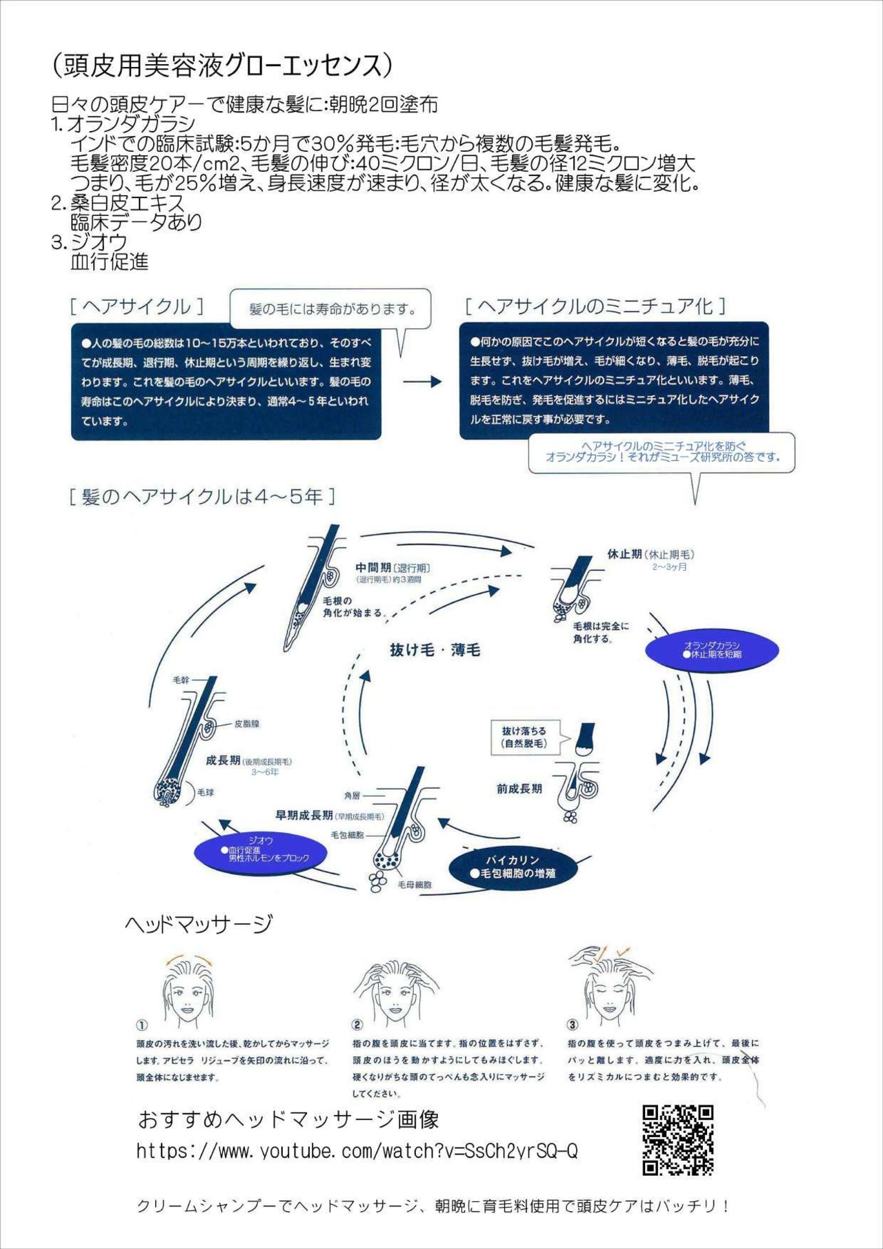 インドでの臨床試験:5ヶ月で30%発毛・毛穴から複数の毛髪発毛・毛髪密度20本/㎠ 毛髪の伸び:40ミクロン/日・毛髪の径12ミクロン増大つまり、毛が25%増え、身長速度が速まり、径が太くなるデータあり。